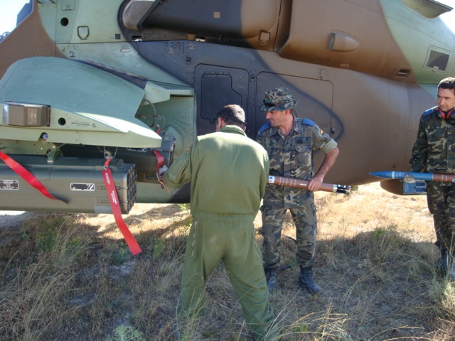 Foto: Personal del BHELA-I coloca cohetes de 68 mm. en uno de los lanzadores de un “Tigre” (foto BHELA-I).