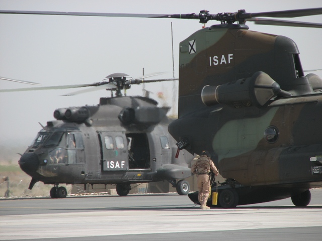Foto: En Afganistán están presentes 3 “Cougar” y 3 “Chinook” (foto FAMET).