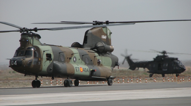 La gran novedad en el caso del ASPUHEL-XXXII y XXXIII es que operarán, además de con el referido terceto de Cougar, con los 3 Boeing CH-47D, que llevan ya un año en el escenario. Estos 3 Chinook, pertenecientes al BHELTRA-V, que tiene base en Colmenar Viejo (Madrid), han pasado una revisión Alfa-Tango, dado que habían agotado casi su potencial de horas de vuelo. Pero en esta ocasión y para ahorrar gastos, en vez de ser traídos a España esta revisión se realizó en la Base de Kandahar (Afganistán) y, además, al mismo costo que se les aplica a los aparatos del mismo tipo estadounidenses. En esta importante instalación de Estados Unidos el US Army tiene montado su propio sistema de mantenimiento de helicópteros asistido por contratistas civiles de esa nación, debidamente homologados por Boeing Helicopter. Esta labor, además de en la numerosa flota de Chinook del US Army, se ha realizado en ejemplares del mismo modelo de otros países que operan en este conflicto, como Holanda y Australia.