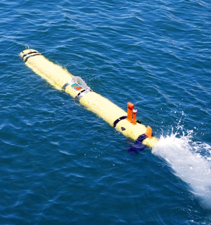 Otra aproximación es la de la empresa Liquid Robotics y su Wave Glider, un vehículo compuesto de dos partes, una flotante y otra sumergida, unidas por un cable de 7 m. La flotante tiene paneles solares y antenas para navegación GPS y la sumergida goza de flotabilidad variable y superficies de control que convierten el movimiento vertical generado por las olas en avance, teniendo así una autonomía casi ilimitada. En la parte de superficie podrían ir sensores meteorológicos, sistemas de identificación automática para buques y un data link satelital y, en la parte sumergida, un sonar acústico, cámaras de video, sensores de salinidad, temperatura o incluso un hidrófono remolcado. Para aplicaciones militares es factible que funcione en grupos, como sensores repartidos en una zona de interés desplegados por buques, submarinos o aviones. Una misión podría ser el despliegue rápido desde el aire contra minas o submarinos o la vigilancia persistente de zonas del litoral, ya que puede mantener su posición con un margen de 40 m., como una red de sonoboyas pero a un coste menor. También podría ser empleado como relé de comunicaciones para submarinos en inmersión.