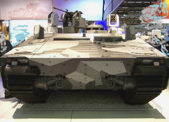 ·La última versión del CV-90, el “Armadillo”, aquí dotado de cadenas sintéticas y sistema de protección activa (foto Eurosatory 2010).