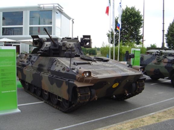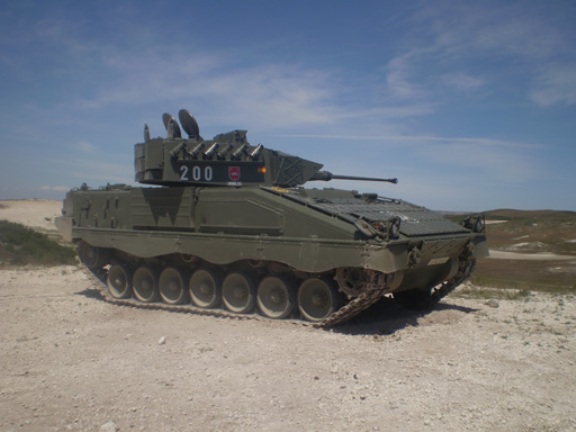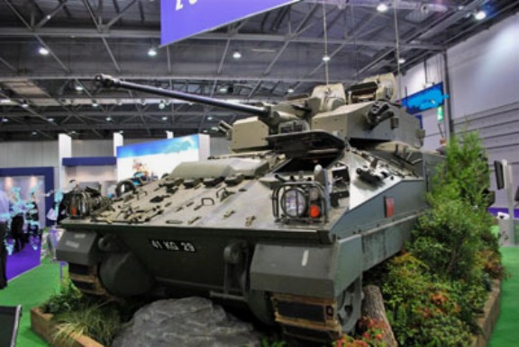 ·“Warrior” modernizado y dotado de nueva torre con cañón CTA de 40 mm. para el Ejército inglés (foto DSEI Londres 2009).