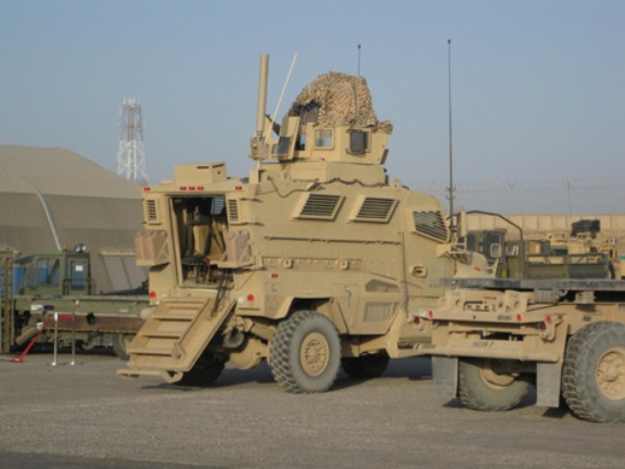 ·MRAP del US Army en Afganistán: la imagen da evidencia de lo alto del centro de gravedad y, por tanto, de la limitación de movilidad añadida.