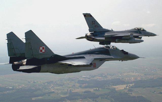 Fotografía: Un MIG-29A polaco y un F-16C estadounidense durante un ejercicio conjunto en 2005 en Polonia (USAF)