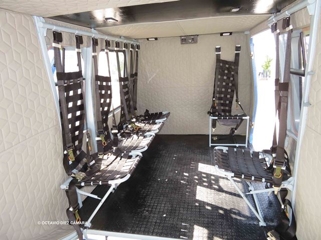 En el costado derecho del aparato hay un portón para facilitar el acceso al interior y puede colocarse una grúa que facilita el izado de personal o de cargas. (Octavio Díez Cámara)