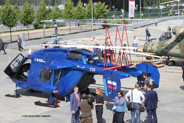 El salón Army 2021 ha sido el escenario escogido para mostrar el prototipo del helicóptero ligero KA-226T, una versión más avanzada del que se dio a conocer hace dos décadas como respuesta a distintos requerimientos internacionales. El ejemplar que hemos podido observar in situ, pintado con un intenso color azul y provisto con un tren de aterrizaje de cuatro ruedas que permiten su toma en entornos complejos, ha llamado poderosamente la atención a los allí concentrados.