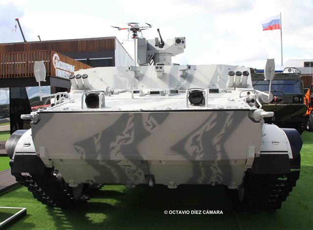 Fotografía: La más reciente variante del BT-3F es un blindado con distintas capacidades que acaba de presentar ROSTEC y que tiene como objetivo dotar a las unidades rusas que combatirían en el Ártico. (Octavio Díez Cámara)