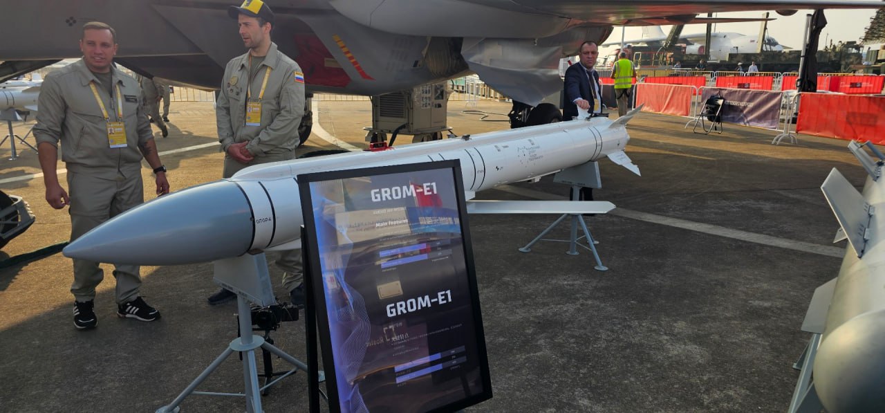 Rusia mostraba su cazabombardero dentro de una apuesta comercial muy fuerte para impulsar su venta a potenciales clientes. El Su-57E se proponía acompañado de una panoplia de armas muy modernas diseñadas y producidas por la Tactical Missiles Corporation.