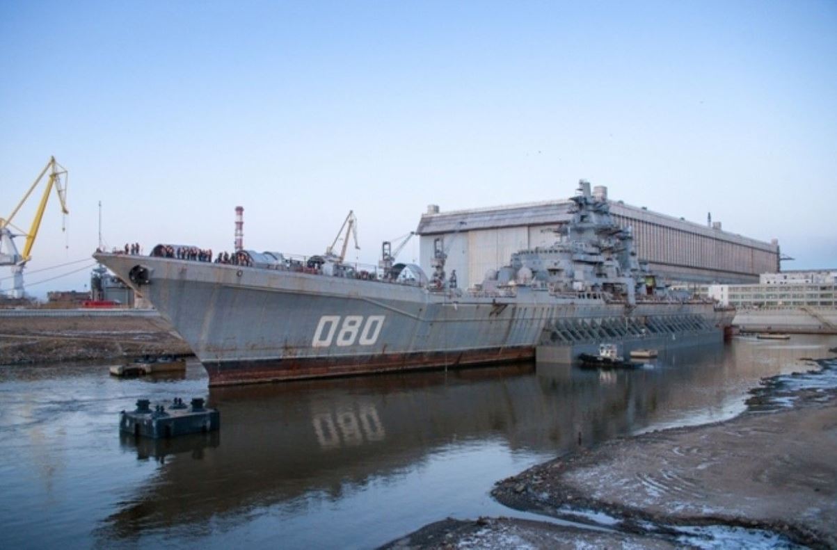 El crucero “Almirante Nakhimov” en el astillero de Sevmash, durante su proceso de modernización. (foto Sevmash)