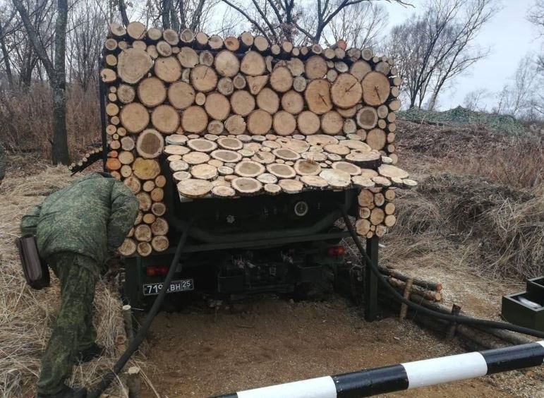 Ante esa eventualidad, según las fotos mostradas en redes sociales, los rusos los camuflan como camiones destinados a la actividad forestal, tan corriente en los grandes bosques de la región. las imágenes, en plena época invernal, muestran un cisterna cuya cuba está revestida con troncos de árboles, aunque sobre todo es interesante la imagen de otro camión cisterna, probablemente del modelo Ural 4320, que lleva una elaborada estructura sobre la cuba de combustible, revestida de delgadas secciones de troncos.