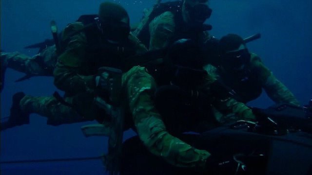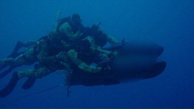 ·Primer plano de los Spetsnaz operando con el DPV Black Shadow en el Mediterráneo Oriental.