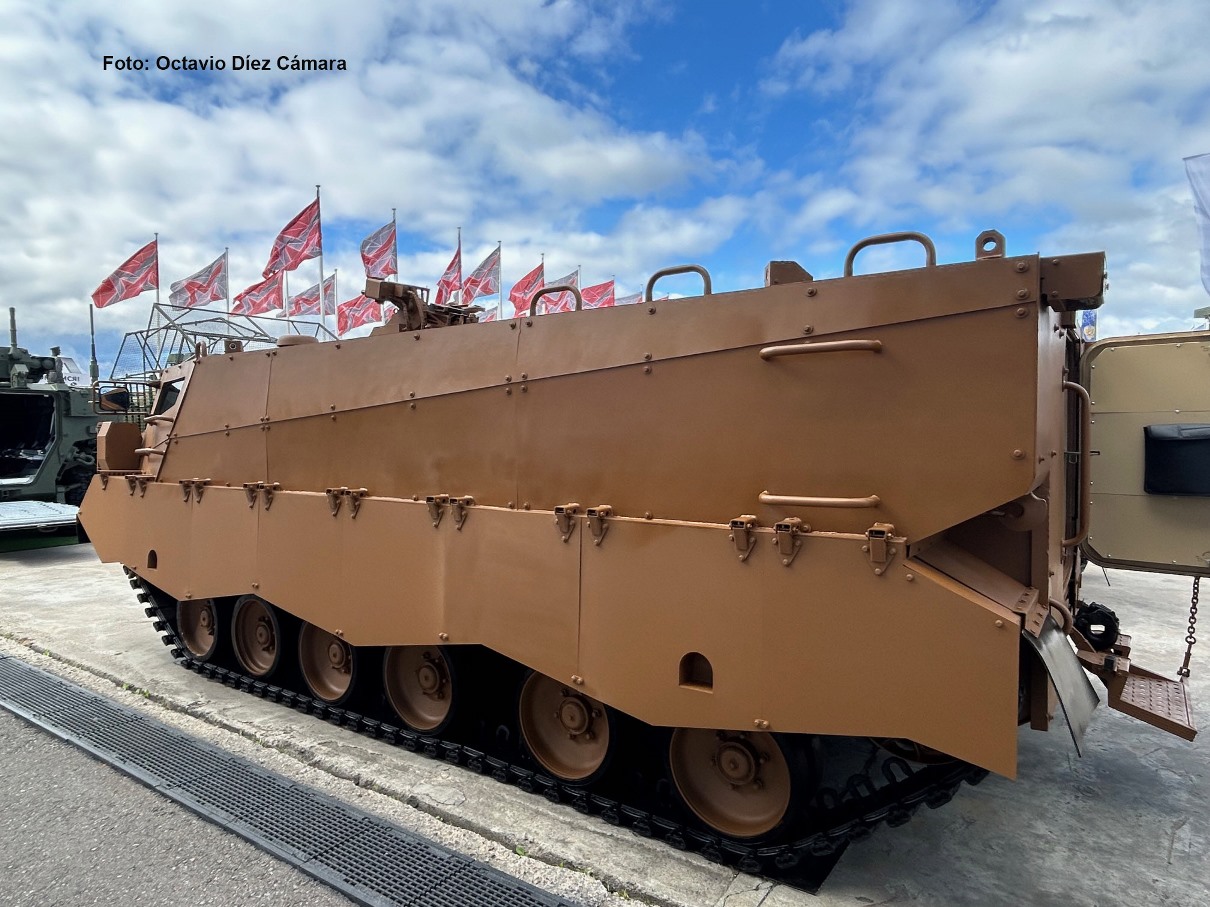 Esta toma permite ver las formas en ángulo del costado del MGT-LB Transporter y los faldones que protegen el tren oruga con cadena de goma. (Octavio Díez Cámara)