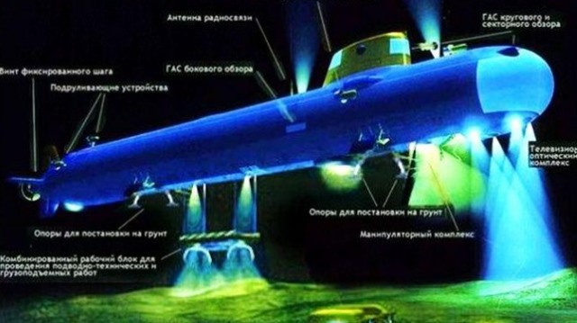 Fotografía: Posible configuración interna del Losharik (H. I. Sutton)
