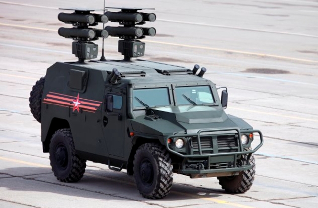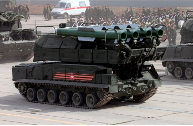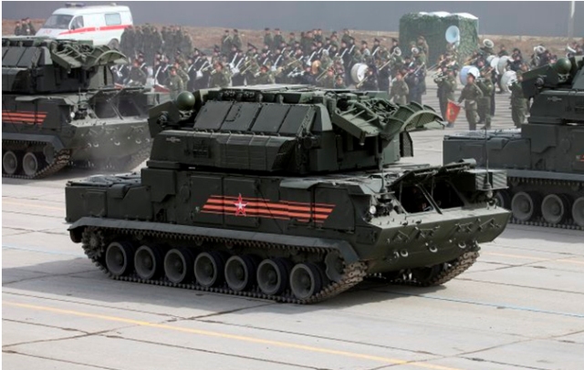 Plataforma tierra-aire para la defensa de tropas. Monta misiles 9M317 con un alcance de 50 km.