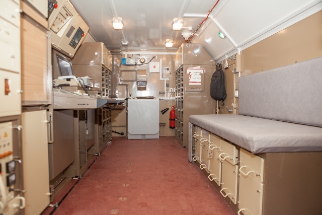 Interior del ‘shelter’ del puesto de indicador del radar móvil tridimensional 59N6-TE.