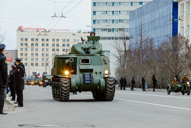 Este año en el marco de la parada militar celebrado en la ciudad de Murmansk (norte de Rusia), ya durante los ensayos se han tomado las fotos de un tanque M-3 Lee; y otras de un M-4 Sherman, su sucesor en el US Army (Ejército de los Estados Unidos) durante la Segunda Guerra Mundial, en concreto es de una de sus versiones avanzadas, la denominada M4A2, armado con un cañón de 76 mm.