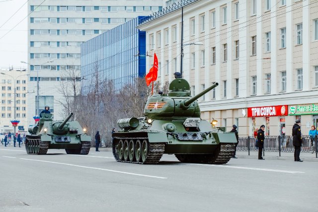 Es habitual que los múltiples desfiles que se realizan en diferentes ciudades de Rusia, en recuerdo de la victoria de la entonces Unión de Repúblicas Socialistas Soviéticas (URSS) sobre los alemanes, se encabecen con los tanques T-34/85 y caza carros SU-85 utilizados en dicho conflicto que se desarrolló entre 1941 y 1945 y que en Rusia se denomina “La Gran Guerra Patriótica”.