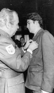 foto: Este soldado, que tuvo un heróico comportamiento durante un atentado en el que resultó muerto un general y un soldado, en Barcelona, recibe una condecoración.