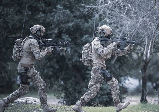 Fotografia: Efectivos del Ejército Israelí armados con un Fusil de Asalto IWI ACE-N 52 con una mira réflex Mepro M5 y una ametralladora Negev con una mira nocturna Mepro LIOR X4.