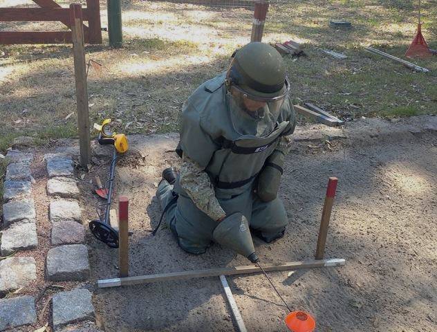 En la Escuela de Ingenieros del Ejército "Mayor Oscar O. Gorgoroso", según informa la Fuerza, se acaba de realizar la re/instrucción en Desminado Humanitario, en la cual participaron 19 efectivos del Arma pertenecientes a los Batallones de Ingenieros de Construcciones Nº 5 y de Combate Nº 6 ya utilizando este sistema. (Javier Bonilla)