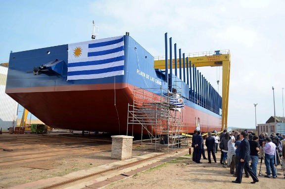 (defensa.com) El Ministerio de Industria, Energía y Minería, Montes del Plata, Galictio-Tiferey y Transfluvial realizaron este lunes la ceremonia de bautismo de la barcaza Playa de Las Cañas, construida para Montes del Plata por Galictio-Tiferey y el Servicio de Construcciones, Reparaciones, Construcciones y Armamento de la Armada, asociados al Clúster de la Industria Naval.