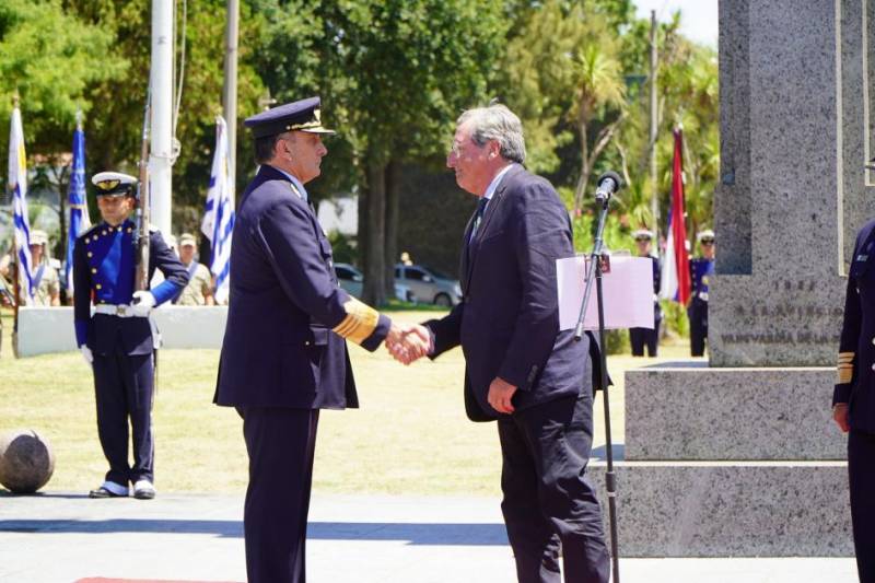 El General del Aire Fernando Colina, despidió a las 13.15h de ayer a su antecesor, el también General del Aire Luis de León, tras ser impuesto como Comandante en Jefe de la Fuerza Aérea Uruguaya por el ministro de Defensa Nacional, Dr. Armando Castaingdebat, en presencia del presidente Luis Lacalle Pou, minutos después de un austero desfile militar y un sobrevuelo de tres Leonardo SF 260 de la Escuela Militar de Aeronáutica.