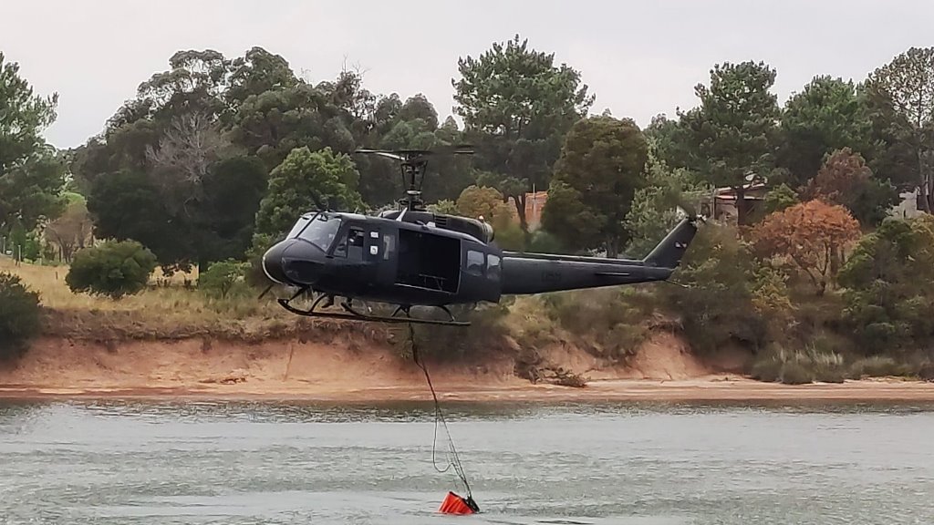 UH-1H cargando su bambi bucket (Foto: "Faunáticos de la FAU"