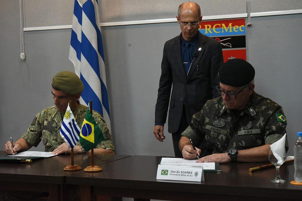Con la presencia del Comandante en Jefe del Ejercito Nacional Uruguayo-general Gerardo Fregossi- y , en representación de Brasil, el Comandante Militar del Sur, general Fernando Soares, se desarrolló, en la sede del 7º Regimiento de Caballería Mecanizada de la ciudad brasileña (fronteriza con Uruguay) de Santana do Livramento ,el acto de entrega a la Fuerza Terrestre uruguaya, de 10 obuses M-108 y 11 vehículos blindados de transporte EE-11 Urutu, cedidos por el gobierno brasileño. La gestión , como adelantamos, comenzó a fines de 2019 en el caso de los obuses.