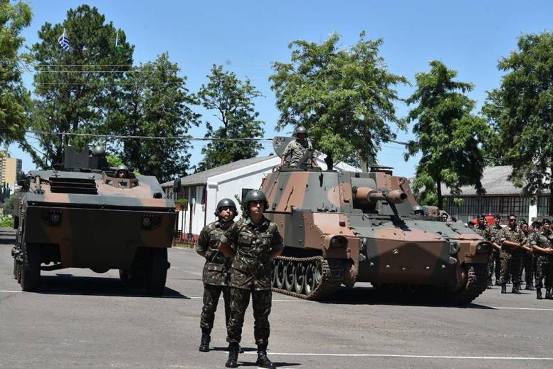 Acto de entrega de obuses M-108 y blindados Urutu de Brasil al Ejército Uruguay