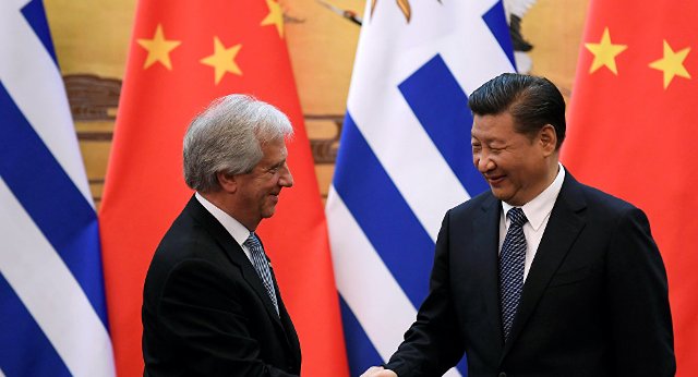 Fotografía: El presidente uruguayo, Tabaré Vázquez, y su homólogo chino, Xi Jinping.