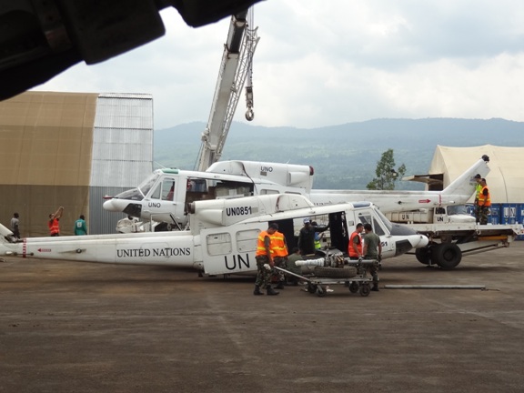 En el mes de agosto de 2012, la FAU ya había realizado en un C- 130 “Hércules” el traslado y puesta a punto en el Congo de un tercer helicóptero Bell 212, que a partir de entonces se sumó a los dos ya operativos desde el 2010 en la zona, habiendo solicitado oportunamente el gobierno uruguayo más unidades Bell 212 para ampliar su presencia internacional. Los vuelos a Bukavu se hacen con escalas en Recife, Ascensión y Kinshasha o viceversa. (Javier Bonilla)