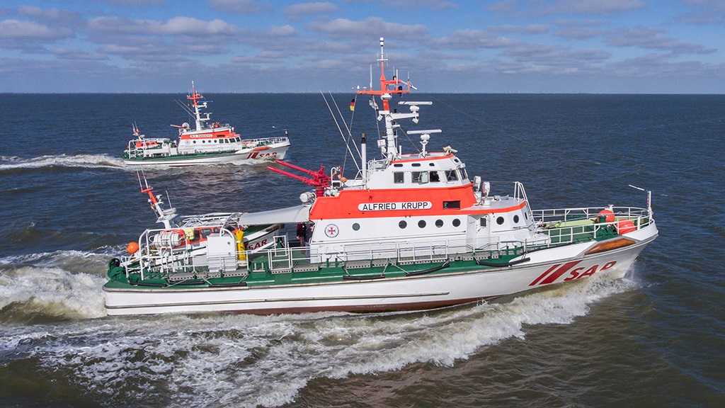 De 1988 a 2020, el Alfried Krupp- construido en Lürssen (hoy NVL) Bremen-Vegesack y actualizado en 1995- estuvo estacionado en la isla de Borkum. Más de tres décadas de servicio fiable en las duras condiciones del Mar del Norte atestiguan su fortaleza. También integra su dotación la lancha 'Glückauf', lanzada mediante un sistema hidráulico.