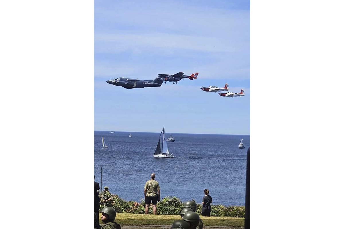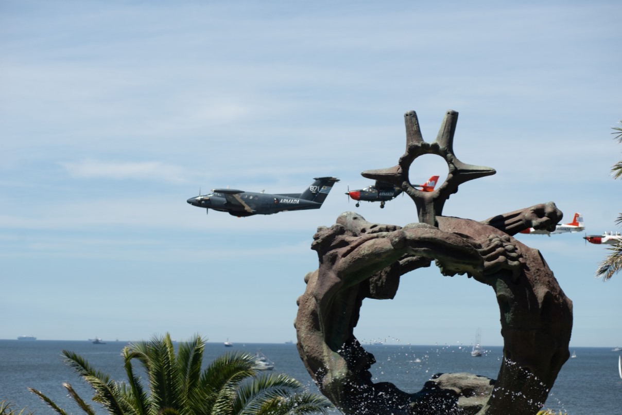 El desfile aéreo contó con una aeronave Beechcraft B-200 T, un Cessna Skymasterz dos Beechcraft T-34C1, dos helicópteros Leonardo AB -412, un Bell Jetranger y el Esquilo brasileño. En su alocución, el Comandante en Jefe de la Armada Uruguaya, Almirante José Luis Elizondo, hizo referencia al mal estado y antigüedad de la flota: