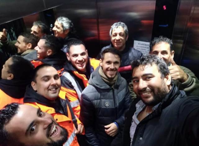 Fotografia portada: Sindicalistas de astilleros uruguayos rumbo a una reunión con autoridades navales
