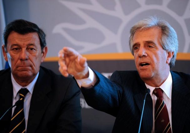 ·Tabaré Vázquez (derecha) y el canciller, Rodolfo Nin Novoa. (AFP)