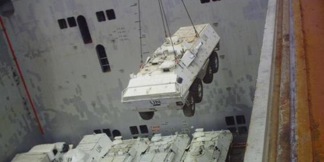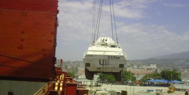 (defensa.com) En cumplimiento de la reducción prevista del Componente Militar de la MINUSTAH, Uruguay está disminuyendo el despliegue de efectivos y con ello un considerable volumen de material y equipamiento excedente debió retornar al país, una operación que arrancó el pasado mes de enero. La inminente devolución de los predios de las Bases de las localidades de Belladere y Mirebalais, antiguos enclaves uruguayos en Haití, han acelerado aún más el proceso de material repatriado. Gracias al apoyo de las Unidades de Ingenieros de Chile, Ecuador, Brasil, y Bolivia, se procedió al traslado de todo el material previamente clasificado. Se trataba, básicamente, de armamento, municiones, material de comunicaciones, maquinarias, herramientas y repuestos.