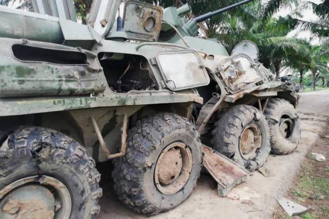 Fotografía: BTR-80A del BIRM N° 3 G/D Santiago Mariño del Ejército de Venezuela destruido por Artefacto Explosivo Improvisado
