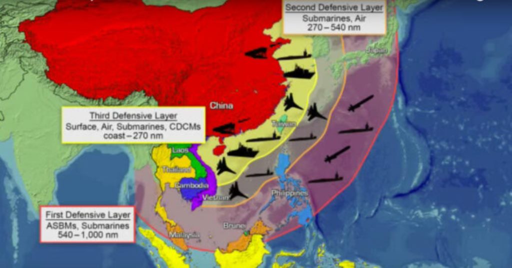 Capas (A2AD) de China en 2016. Fuente: Imagen de la Oficina de Inteligencia Naval.