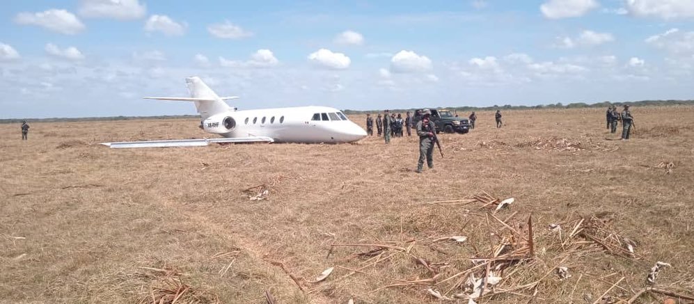 Falcon 200 sospechoso de estar transportando drogas en Venezuela. (Foto:CEOFANB)