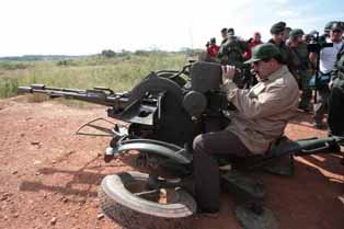 (defensa.com) El fuerte Los Caribes, del Centro de Adiestramiento y Combate G/J José Laurencio Silva en El Pao, estado Cojedes, fue el escenario escogido por la Fuerza Armada Nacional Bolivariana (FANB) para ejecutar la demostración en conjunto del sistema de defensa denominado "Patria Inexpugnable". En el ejercicio militar estuvo presente el presidente de la República, Nicolás Maduro, acompañado de la ministra para la Defensa, Carmen Melendez, y del jefe del Comando Estratégico Operacional de la FANB, Vladimir Padrino López, entre otras autoridades. Para la demostración se utilizó un cañón automático antiaéreo doble remolcado ZU-23 y se hizo el lanzamiento de misiles IGLA. En el ejercicio fueron desplegados, así mismo, helicópteros de combate Súper Puma, Cougar, M-17, aviones K-8W y Sukhoi 30.