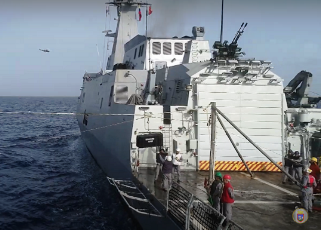 - Vista de popa del “Yekuana” en la que se aprecia el sistema ZSU-23-2 instalado sobre el hangar del helicóptero. (foto Petro Noticias)