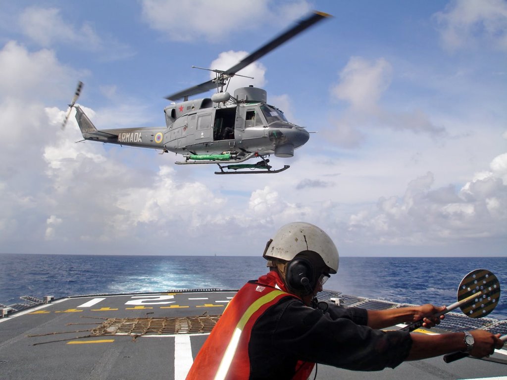 Helicóptero Agusta Bell AB-212 ASW despega desde la cubierta de vuelo de la fragata AB Mariscal Sucre (F-21) (Foto: Armada Bolivariana)