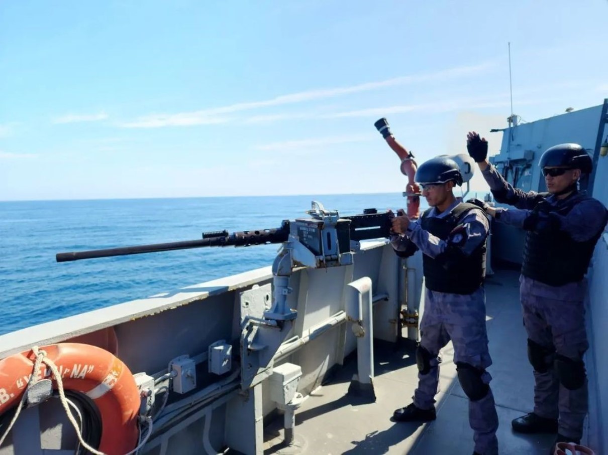 Ejercicio de fuego real con una ametralladora pesada Browning M2HB de .50 instalada en un buque Guaiquerí/Avante 2200. (Foto AB)