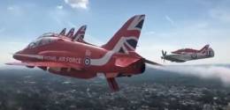 Las flechas rojas escoltando a un Spitfire en Farnborough 18