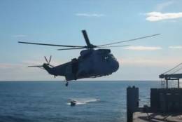 Reaprovisionamiento mediante VERTREP del buque El Camino Español de la Armada española con un SH-3