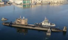 Submarino S-81 se traslada a la fosa elevadora de buques en Cartagena