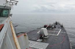 African Lion: USS Ross disparando su cañón Mark 45 frente a la costa de Marruecos