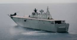 Un Chinook de la Fuerza Aérea de Singapur aterriza en el HMAS Adelaide