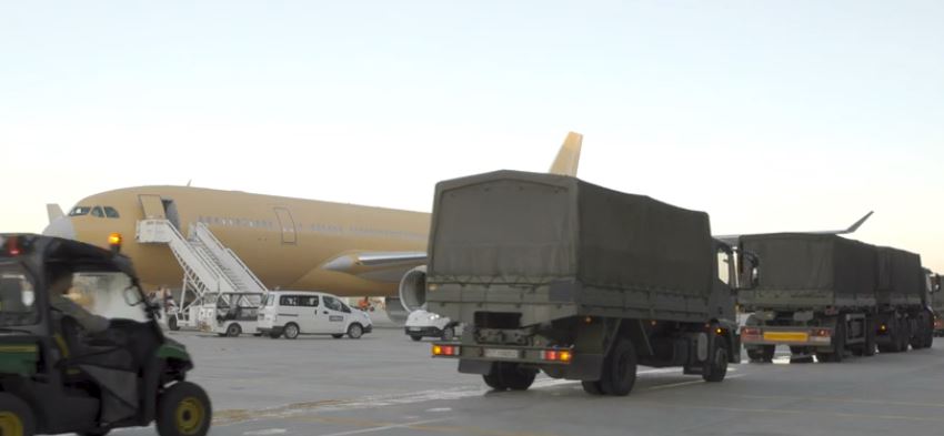 El pasado 28 de marzo aterrizó en Getafe (Madrid) un A330 MRTT procedente de Tianjin cargado con 4.000.000 de mascarillas. En el vídeo se aprecia al personal del Ejército de Tierra organizar la carga en camiones militares que posteriormente será distribuida en Francia, Alemania y Reino