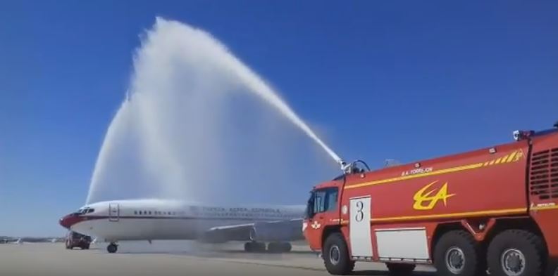 Baño de despedida del Boeing 707 del Ejército del Aire